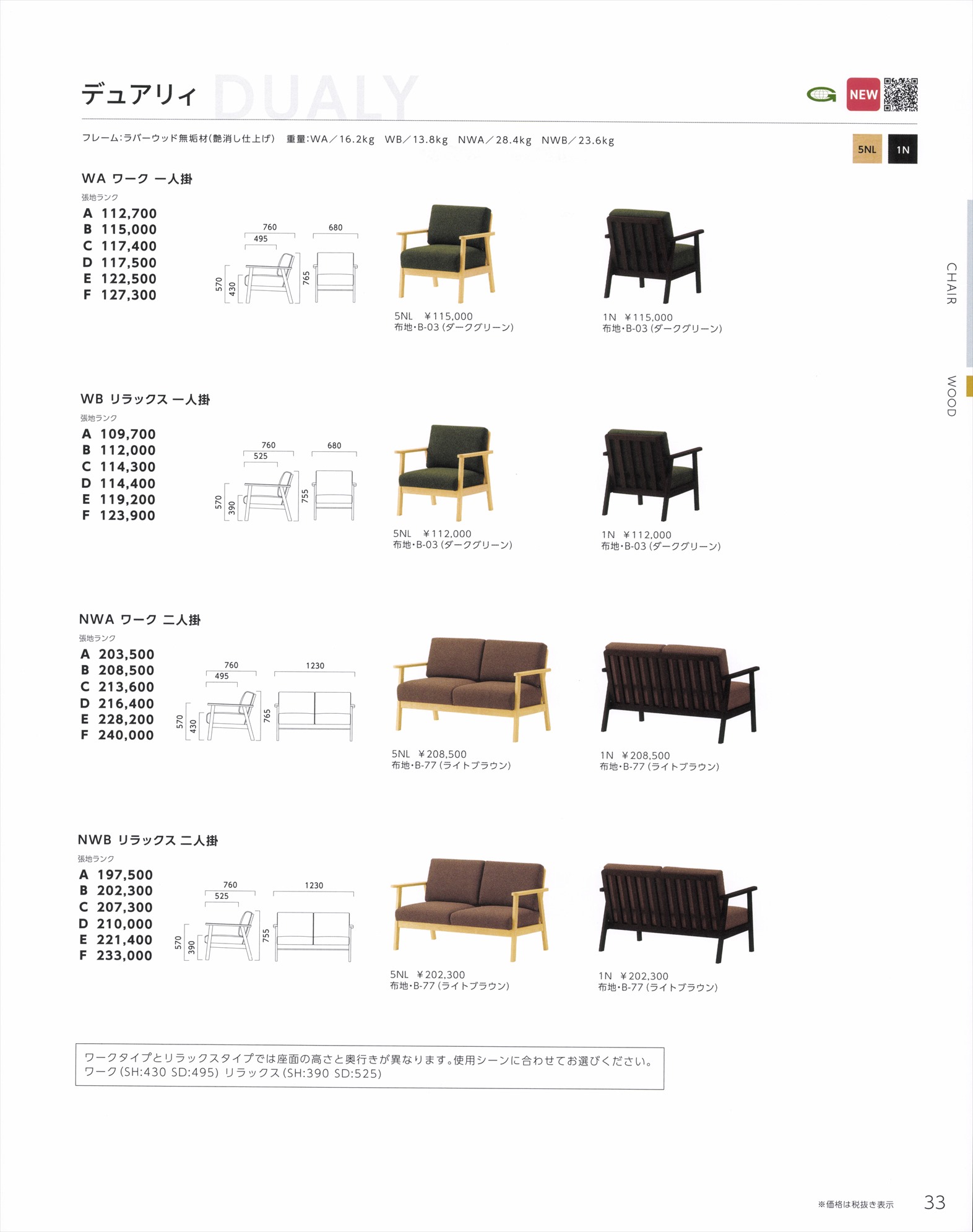 デュアリィ NWB 2人用リラックス 木部色2色より選択 表示価格Aランク