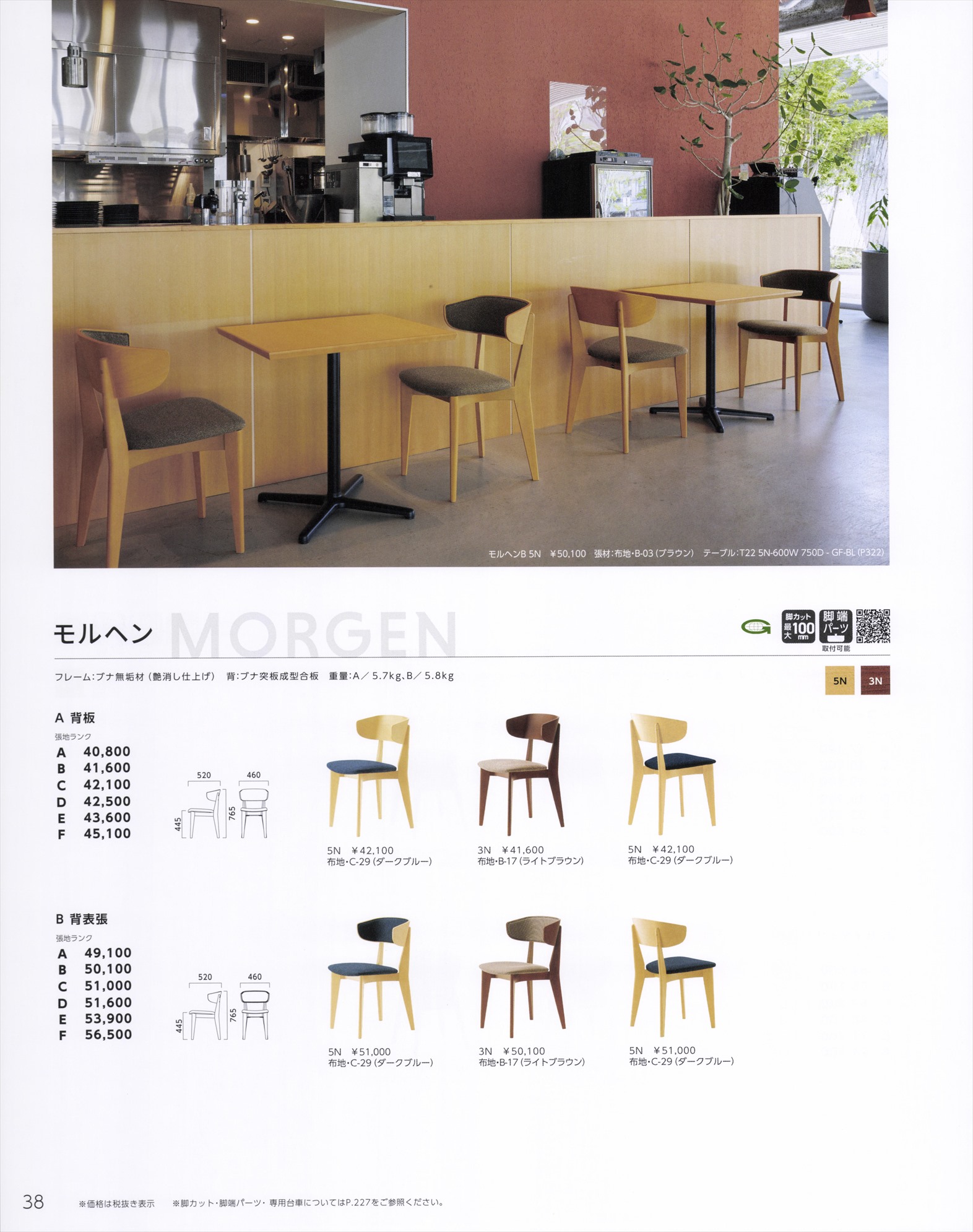 モルヘンB 木部色2色より選択 張地ランクAにての価格