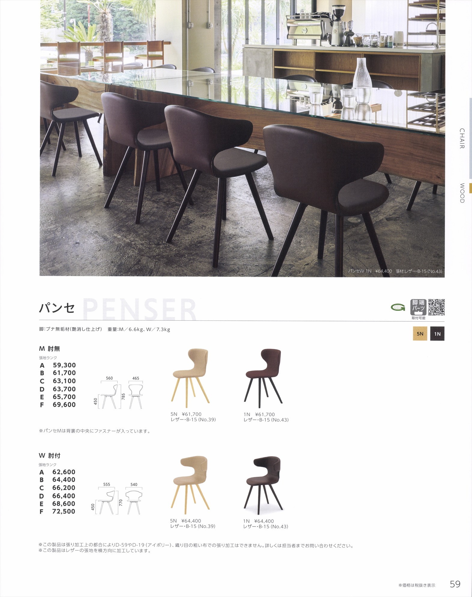 パンセ M 張地ランクAにての価格 木部色2色より選択