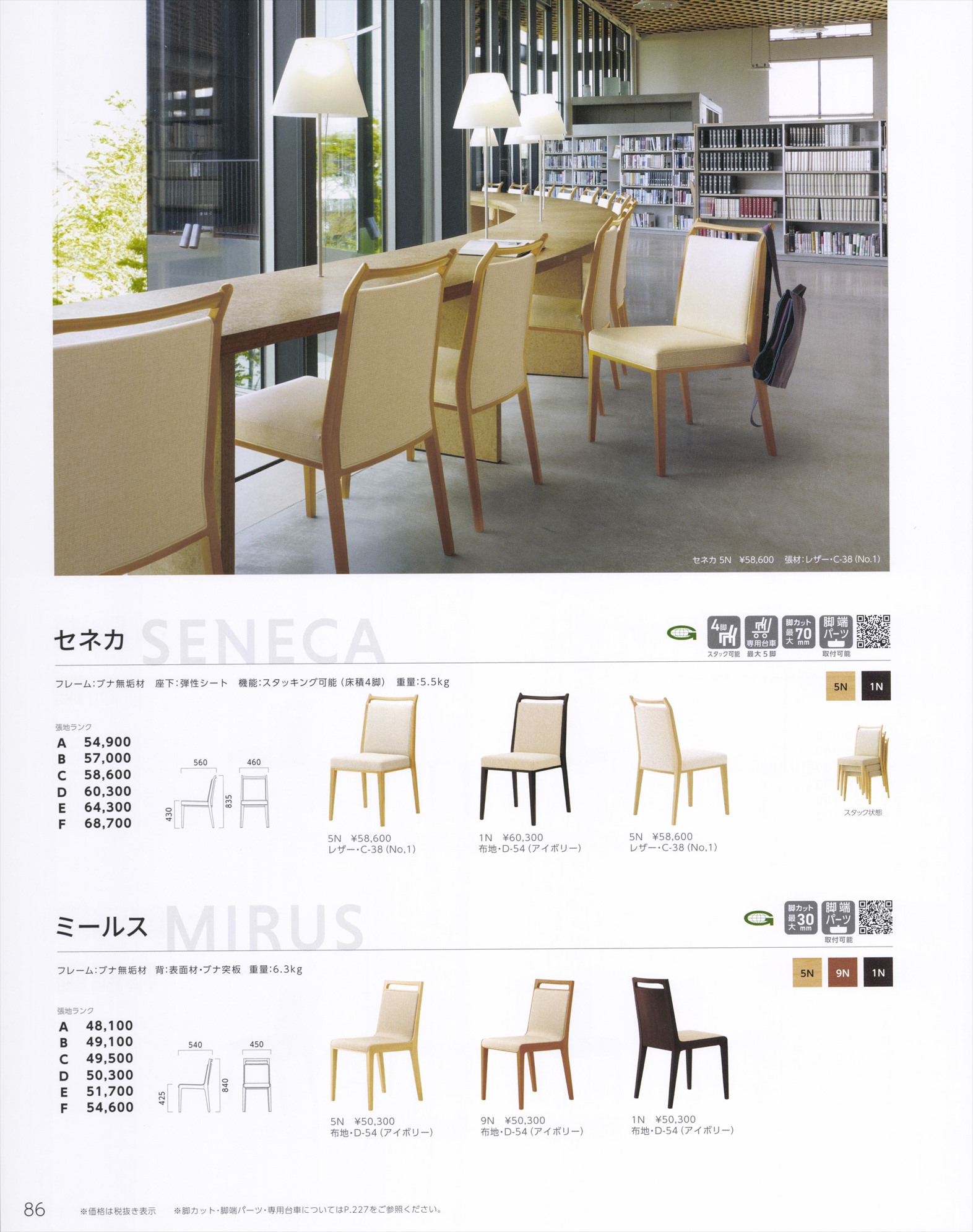 セネカ 木部色2色 スタッキング可能 【張地・合成皮革Aランク】