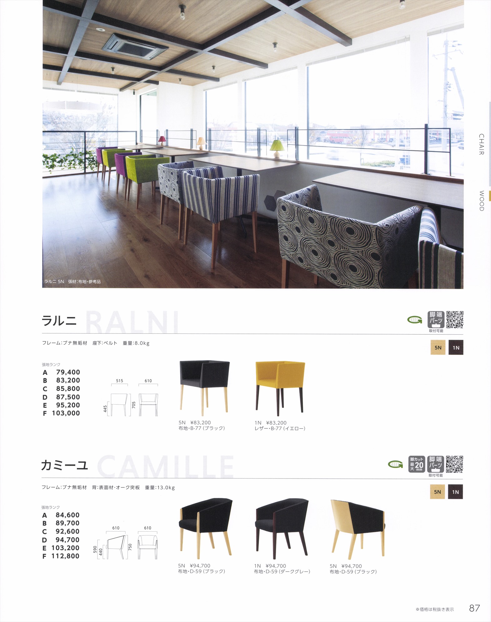 カミーユ 木部色2色 (張地・合成皮革Aランク)