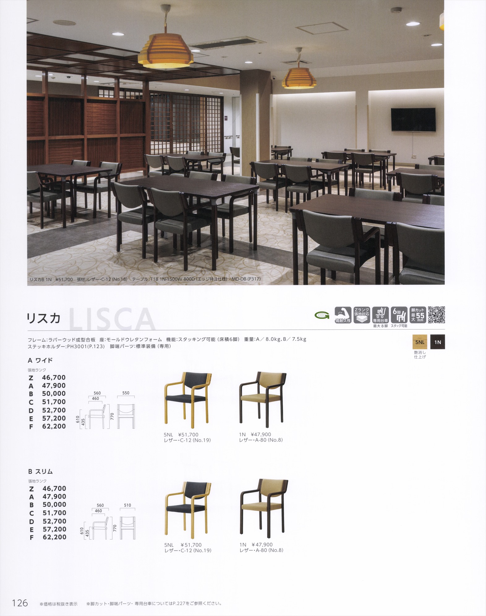 リスカA,B 福祉施設用椅子 張り地ランクZ 椅子の幅選択可能商品