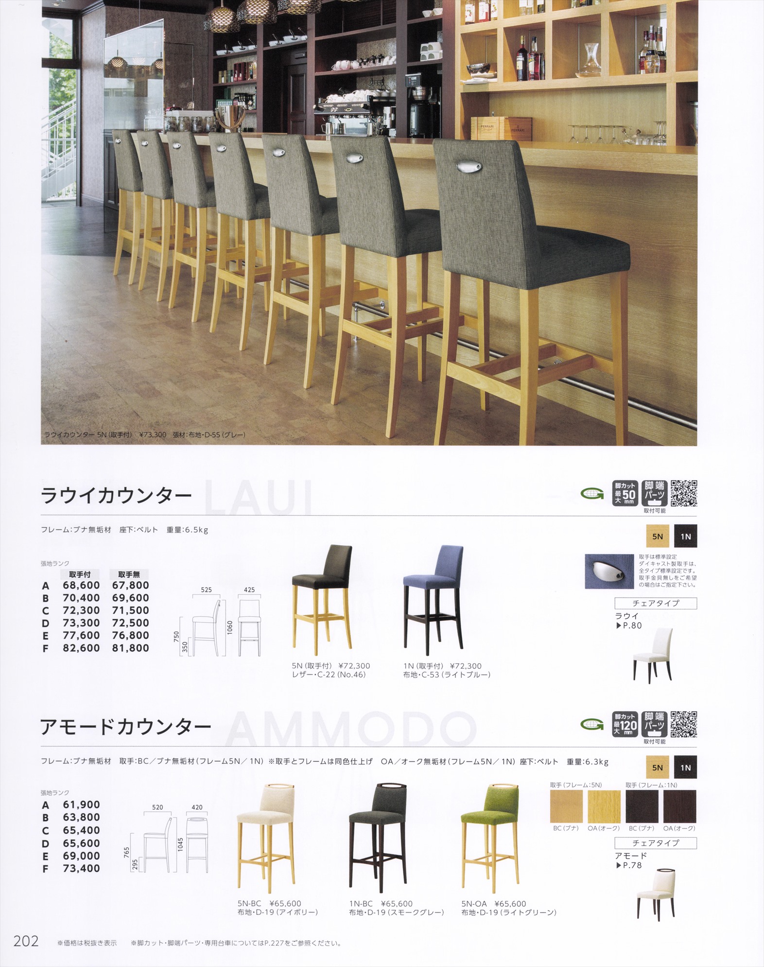 アモードカウンター 木部色2色 (張地・合成皮革Aランク)