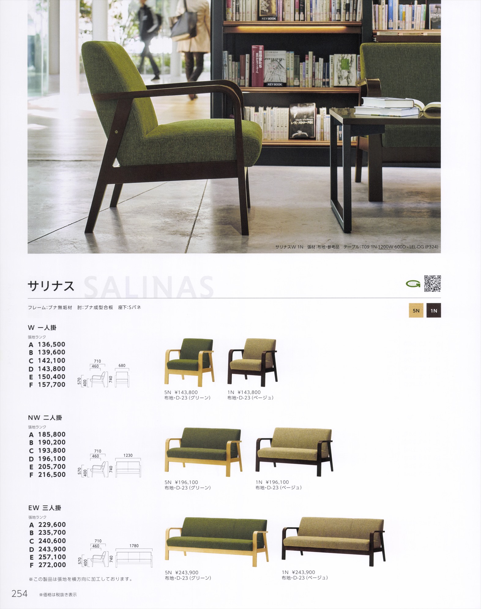 サリナスW 1人用 張地ランクAランク 木部色2色より選択