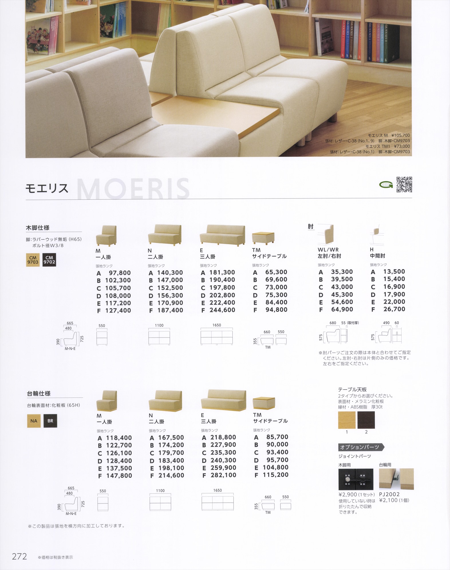モリエス E (3人掛)脚部色2色 張地ランクAランクの価格