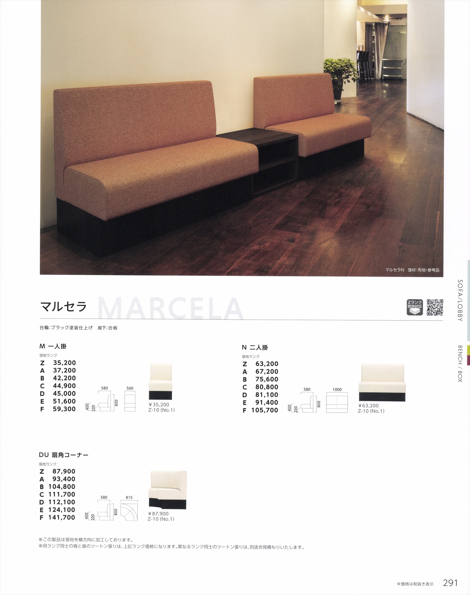 マルセラ二人掛 張地ランクZより選択価格 台輪色(ブラック)
