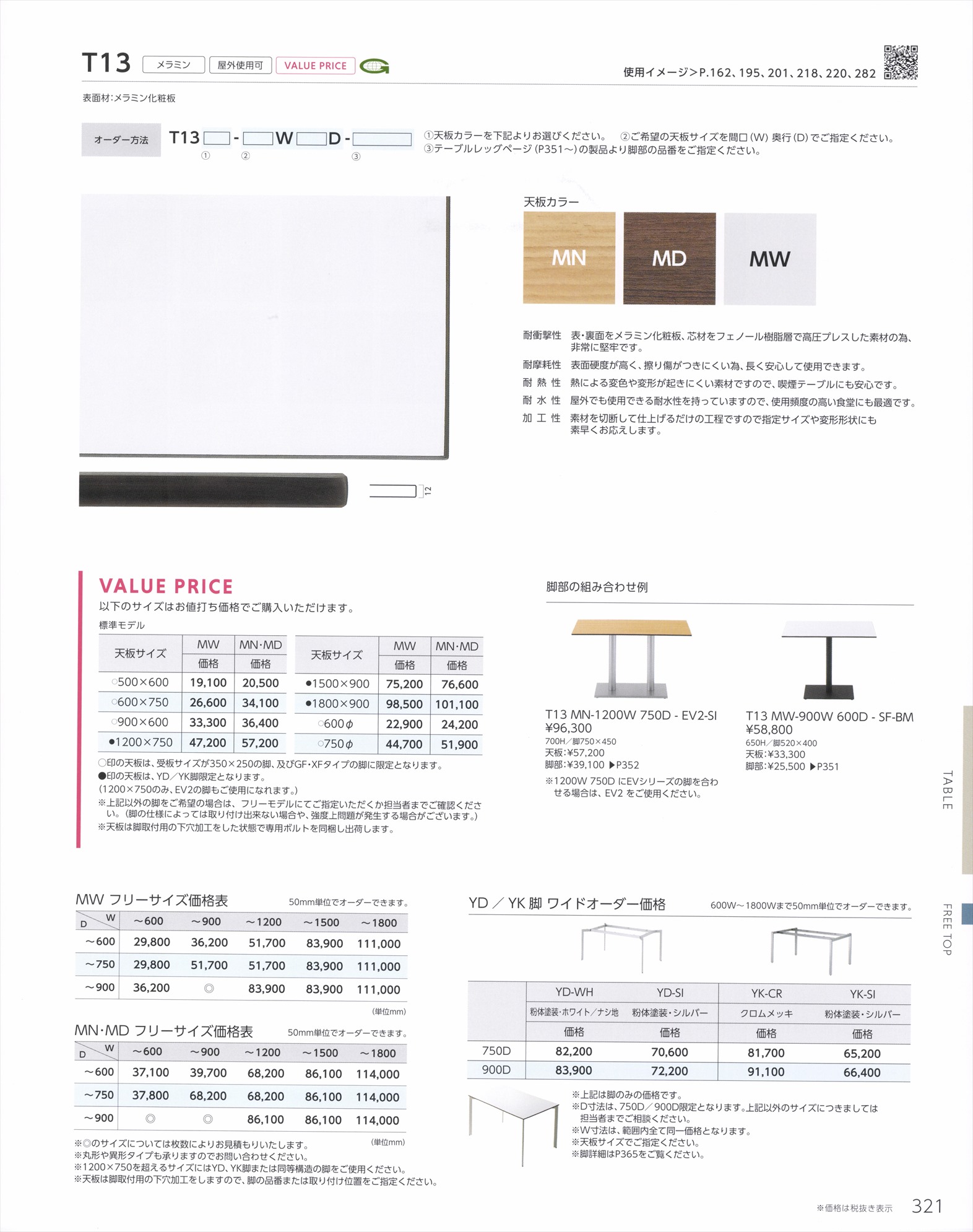 T13 木目2色の価格 W900×D750 厚み12mm 天板色2色