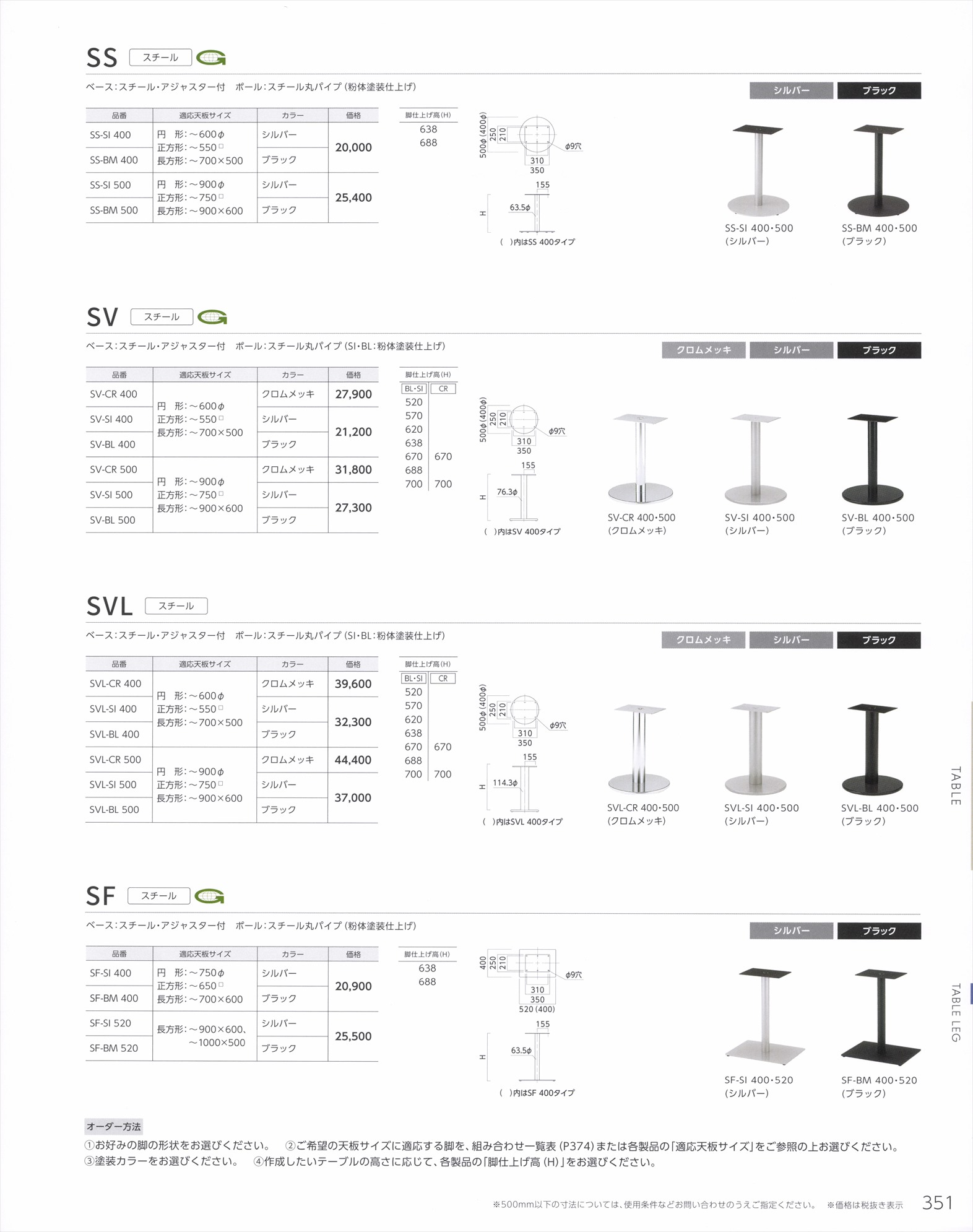 SSーSI500 適応天板サイズ900丸 ベースサイズ500丸