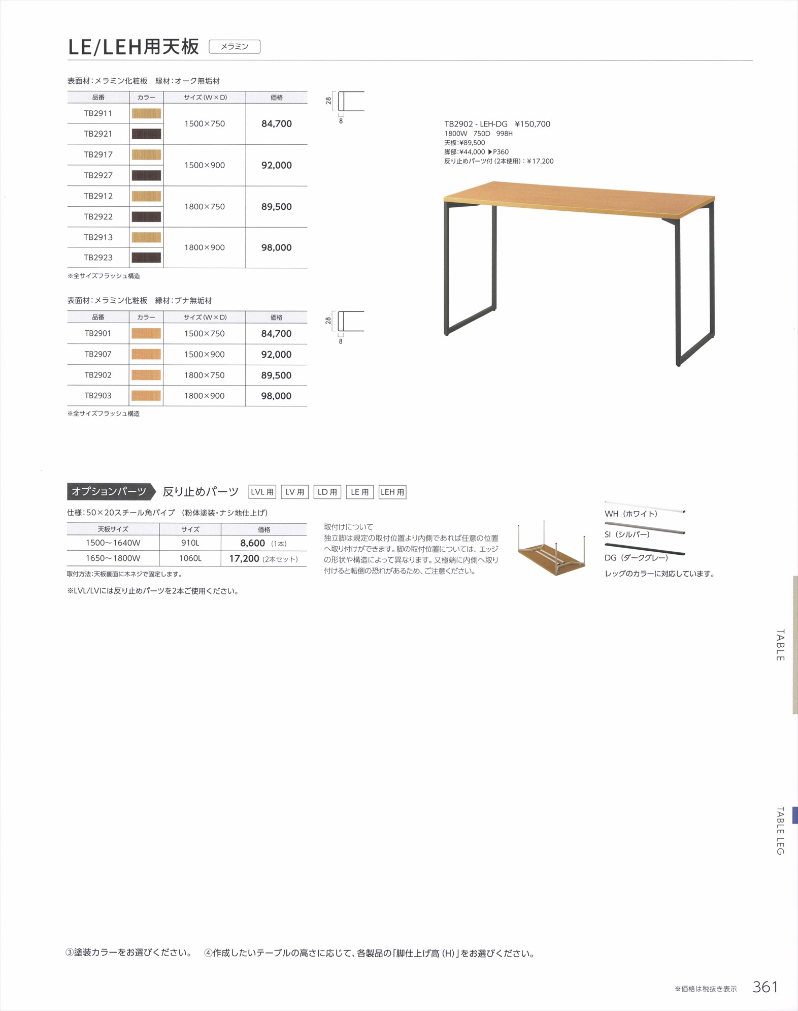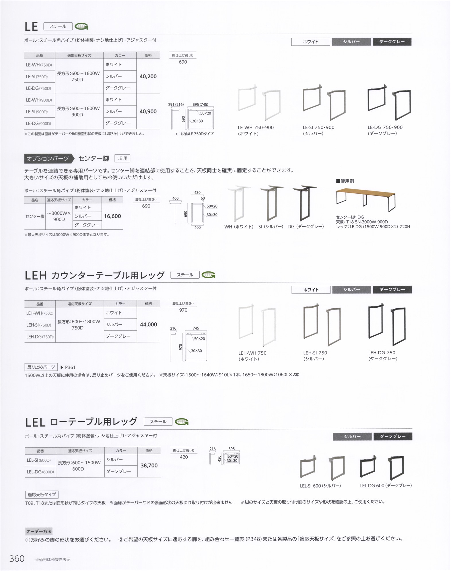 LE,LEH カウンターテーブル用レッグ,LEL ローテーブル用レッグ / LE/LEH用天板