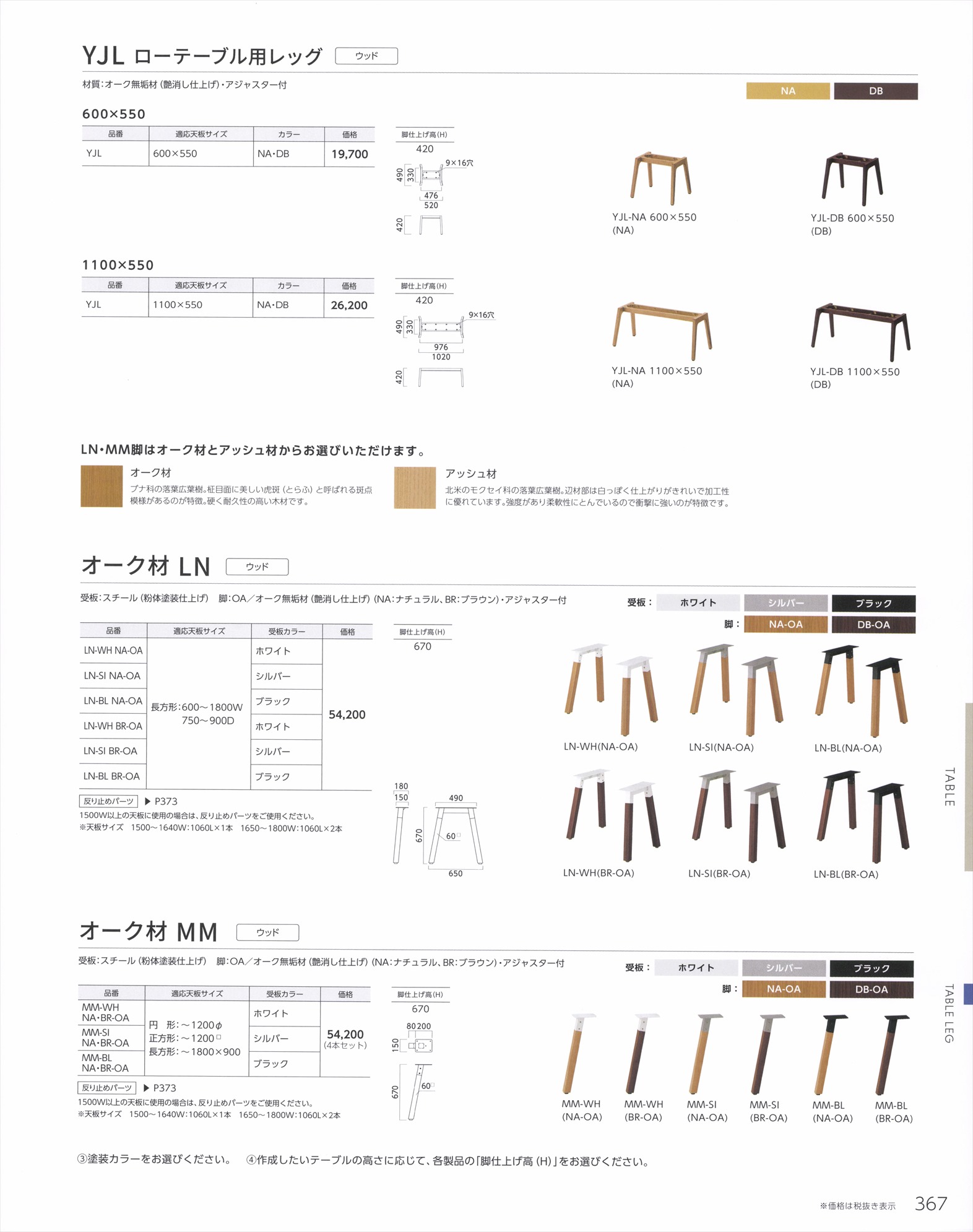 YJ,YJH カウンターテーブル用レッグ / YJL ローテーブル用レッグ,オーク材 LN,オーク材MM