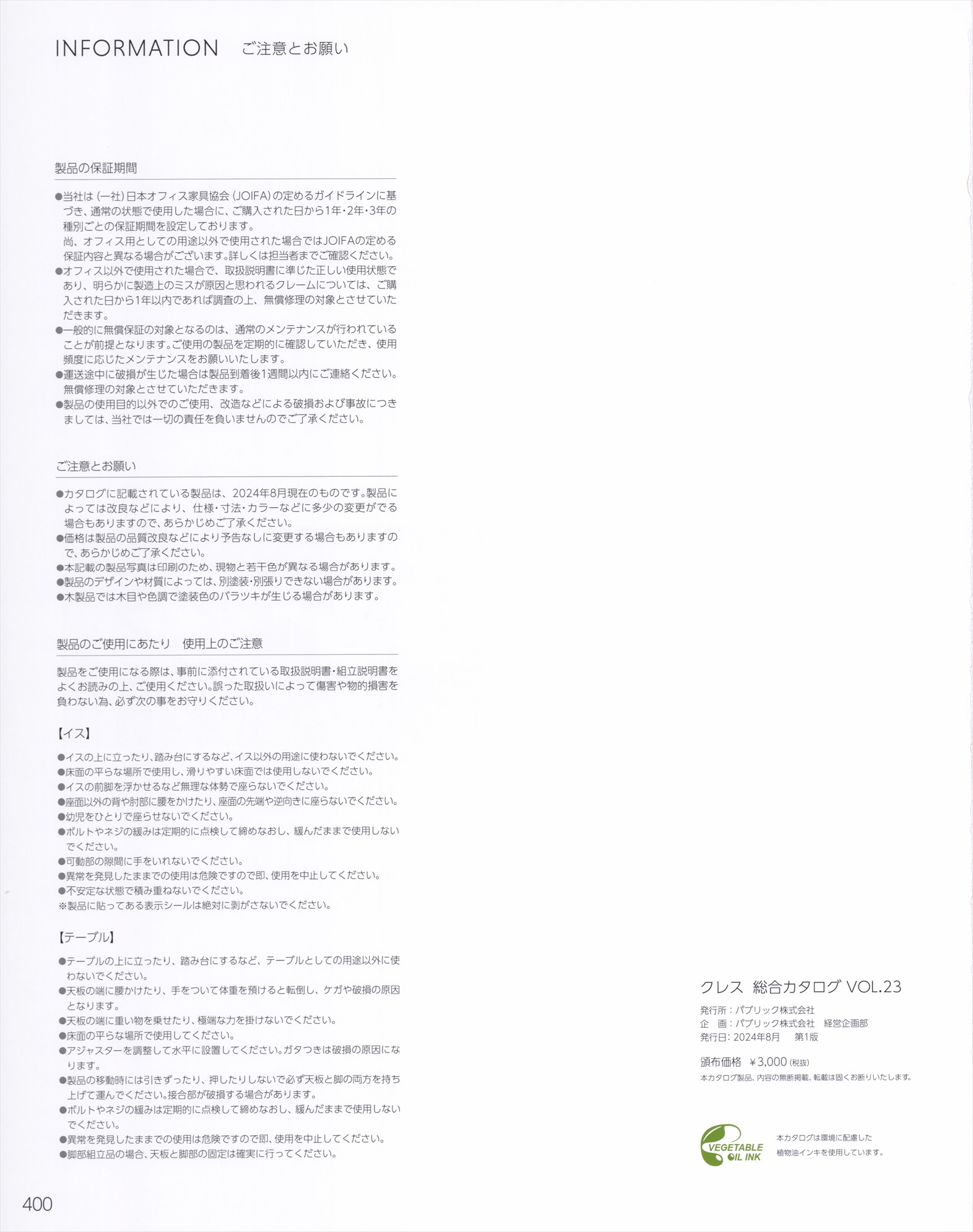 INFORMATION ご注意とお願い / 裏表紙裏